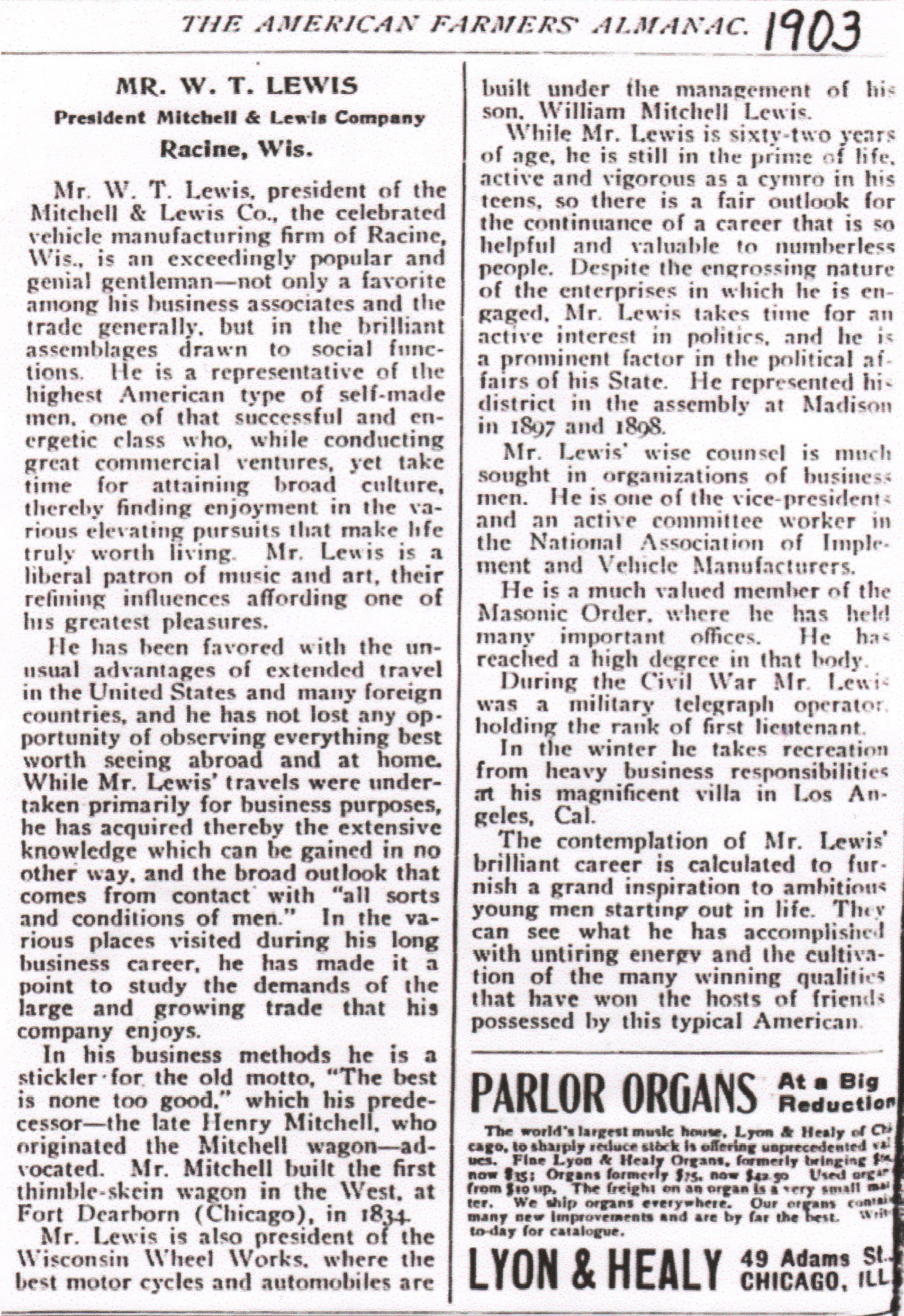 For a blast from the past, check out this news clipping on The New York Times website, back when the Mitchell Motor Car Company absorbed Mitchell & Lewis Company.